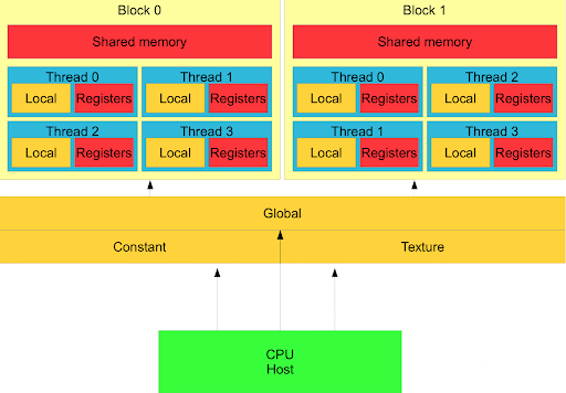 How can a thread get the value from another thread? Turns out, thread blocks have access to a shared pool of memory that only threads within that block can read and write to. It is known as shared memory or L1 cache, and it’s entirely programmer-managed! It is also ten times lower latency than going to global memory.